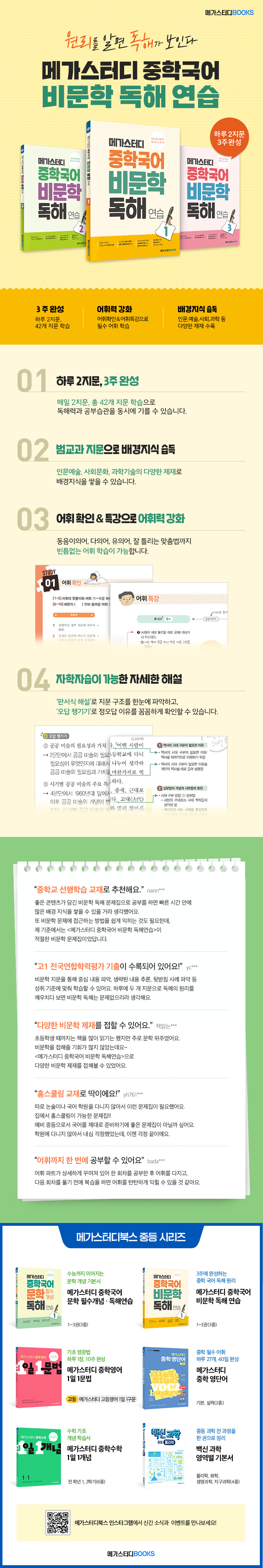 [메가]메가스터디 중학국어 비문학 독해연습 2 독해의 원리를 깨우치는 가장 좋은 독해 연습 책 [ 중1, 중2, 중3 ]
