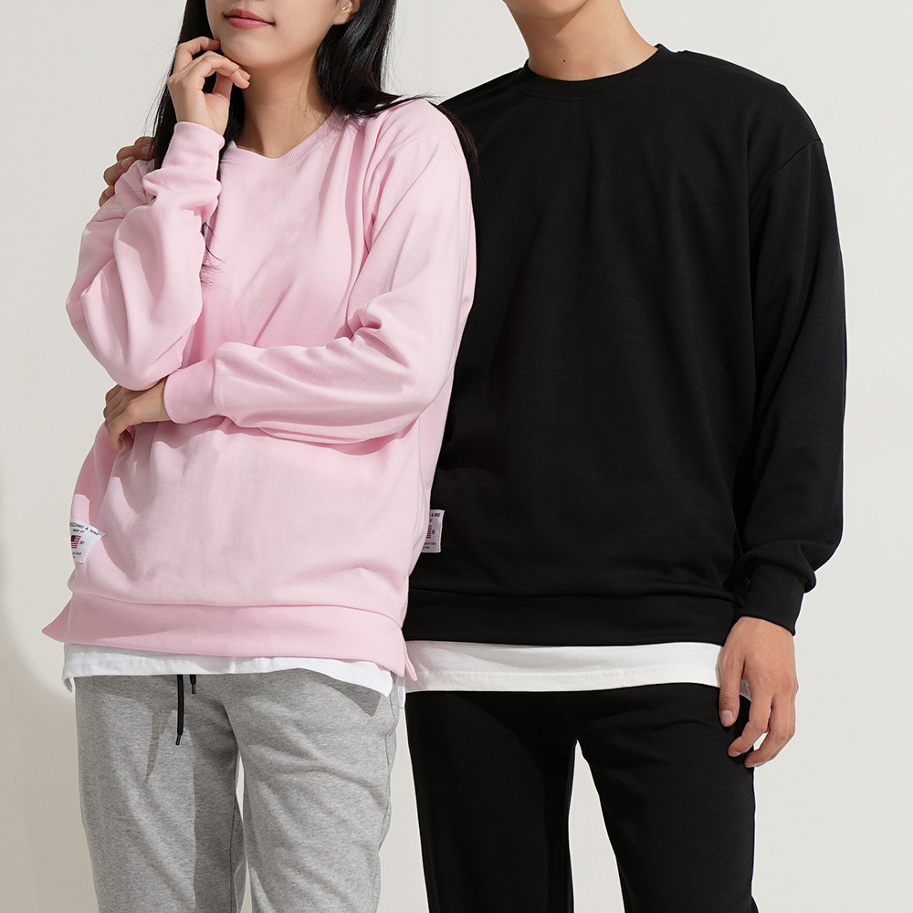 봄가을에 입기 좋은 부드러운 데일리 맨투맨. 심플한 라운드넥으로 남녀노소 편하게 착용하기 좋으며 과하지 않은 기본핏으로 단품으로, 이너와 레이어드하여 착용하기 좋습니다.
