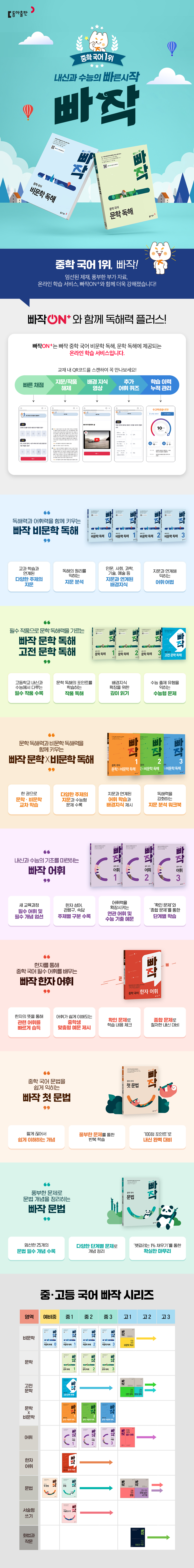 문학ㆍ비문학 교차 학습을 통해 문학 독해력과 비문학 독해력을 함께 키울 수 있는 중학생용 국어 독해 교재이다.