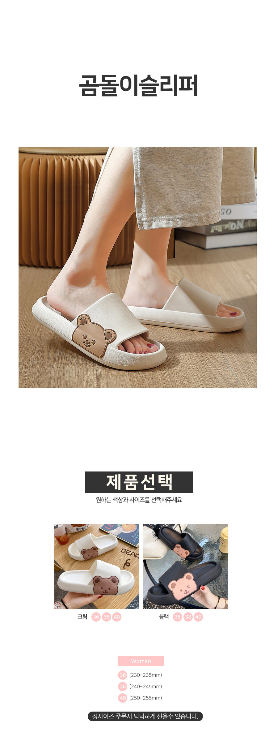 1+1 (2PACK) 베어 패치 여성 남성 쿠션 슬리퍼 실내화 거실화 샌들 슈즈 무료배송