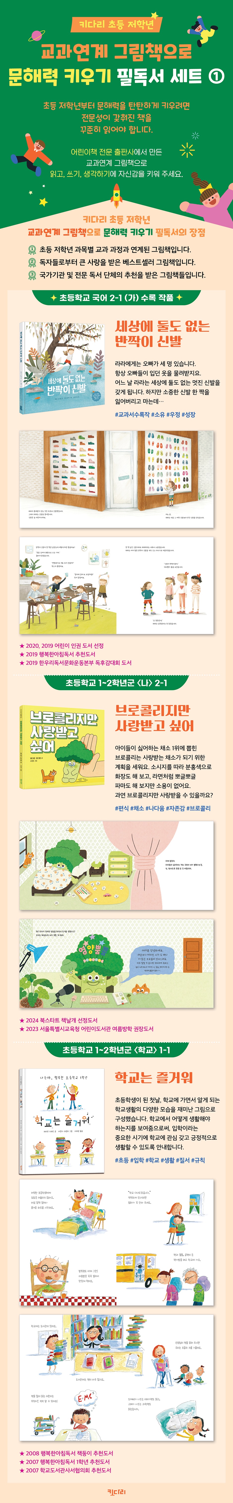[키다리] 키다리 초등 저학년 교과연계 그림책으로 문해력 키우기 필독서 세트1 편식, 학교생활, 우정 [ 전3권 ]