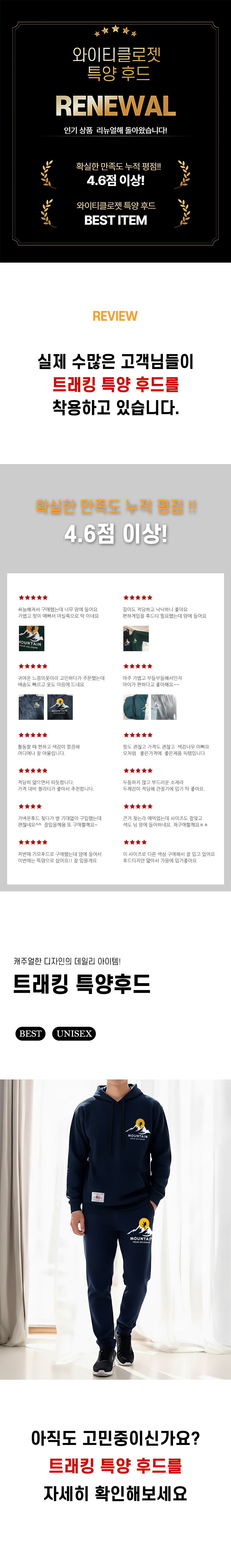 트래킹 사계절 특양면 후드티셔츠 남여공용 빅사이즈 트레이닝복 일상복~3XL