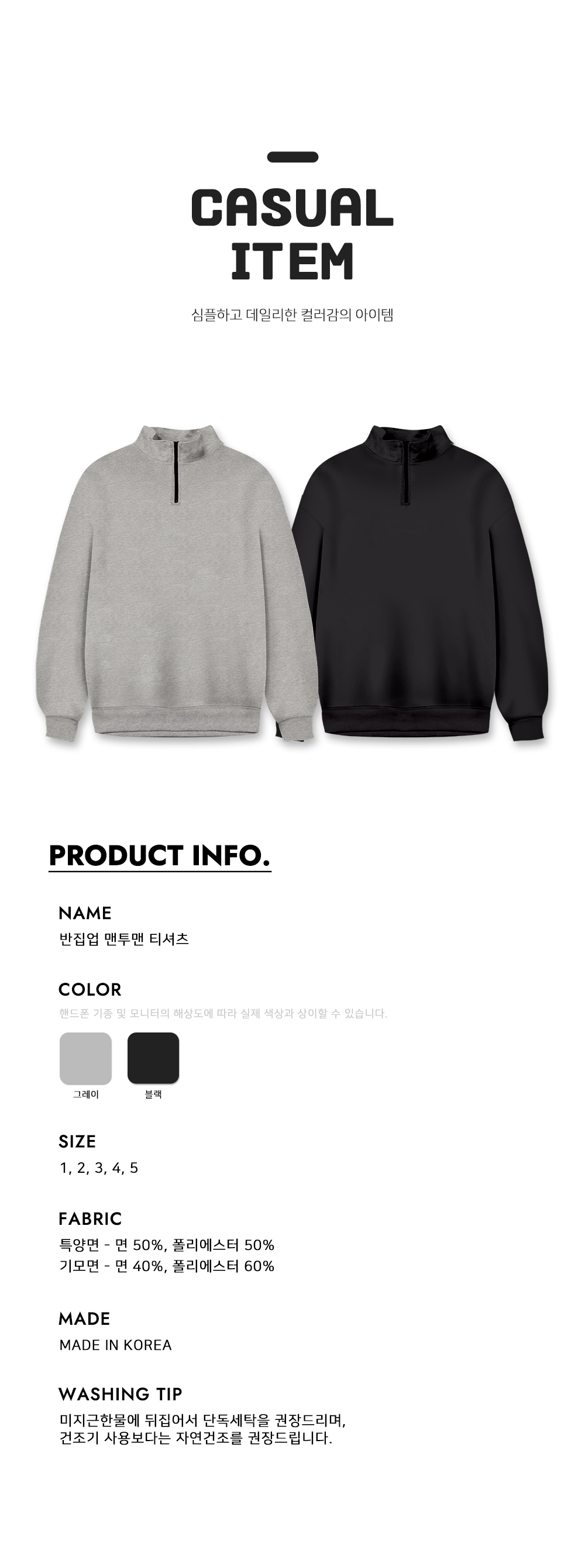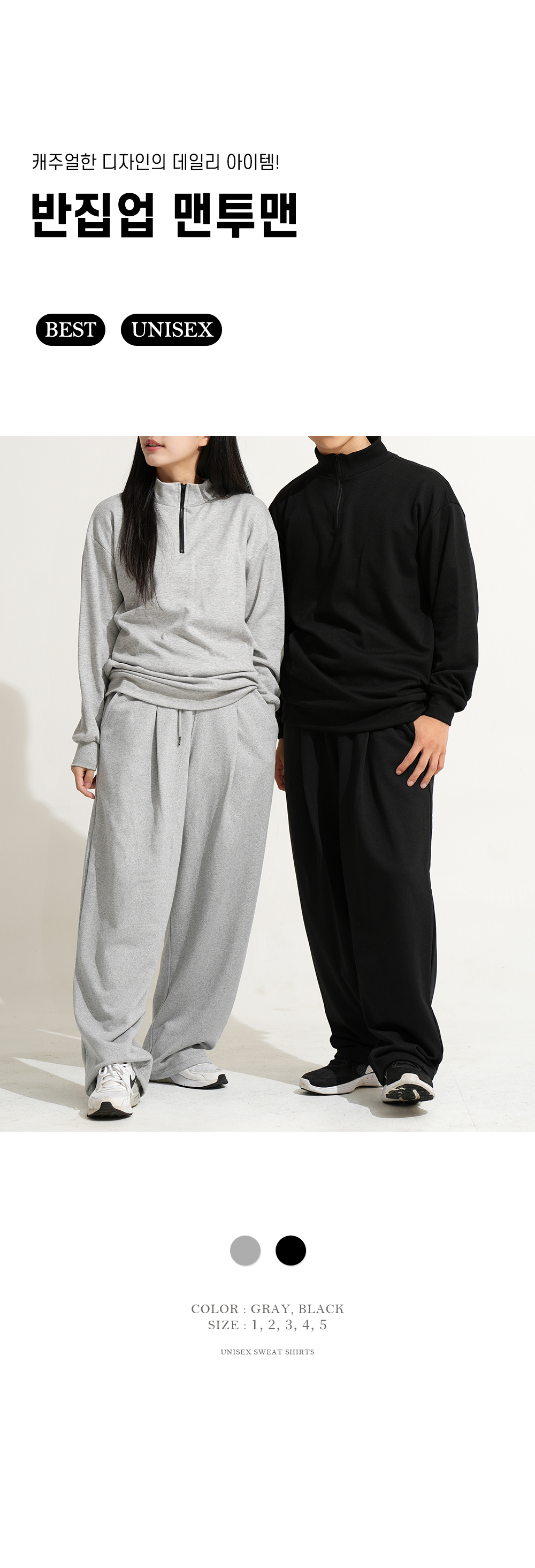 1+1(2PACK) 특양/기모 맨투맨 반집업 남여공용 스웻셔츠 긴팔티 홈웨어 일상복~3XL
