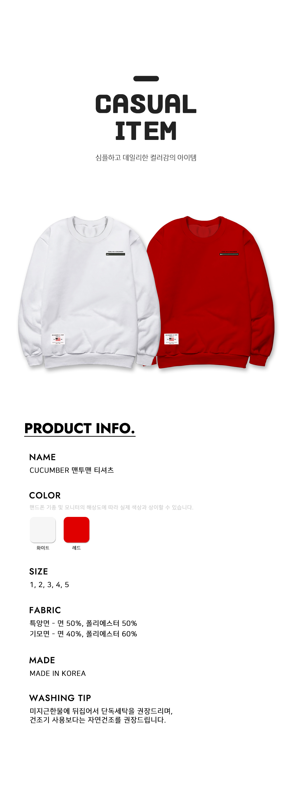 1+1(2PACK) 특양/기모 맨투맨 CUCUMBER 남여공용 스웻셔츠 긴팔티 홈웨어 일상복~3XL