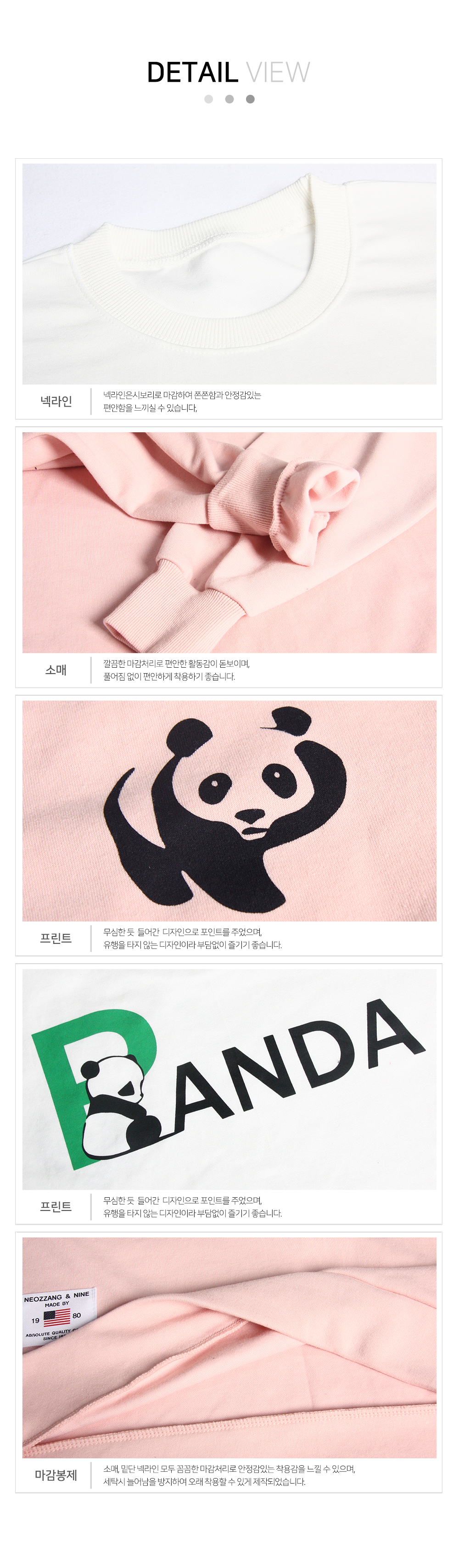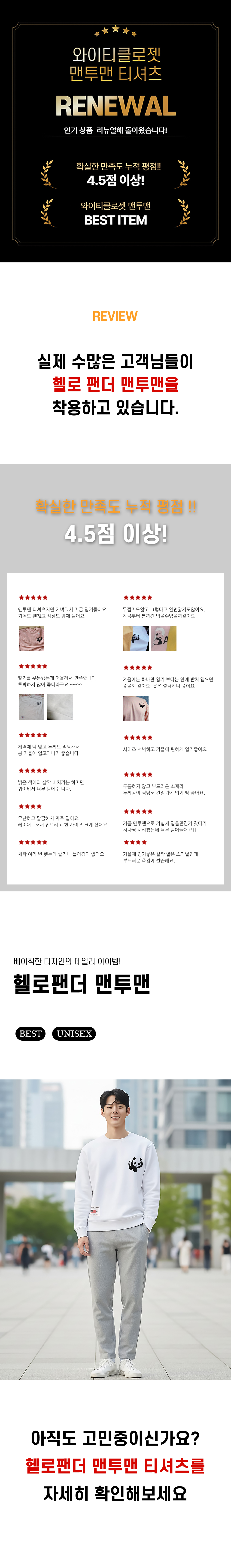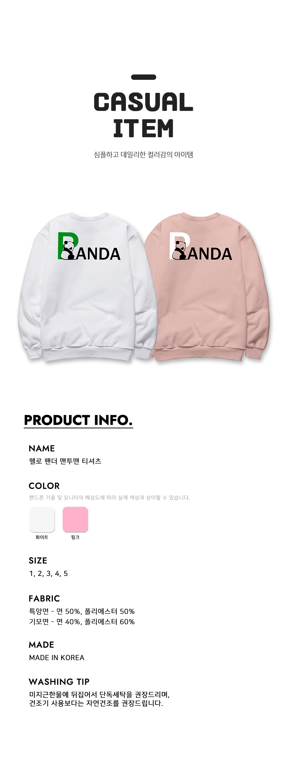1+1(2PACK) 특양/기모 맨투맨 헬로 팬더 남여공용 스웻셔츠 긴팔티 홈웨어 일상복~3XL