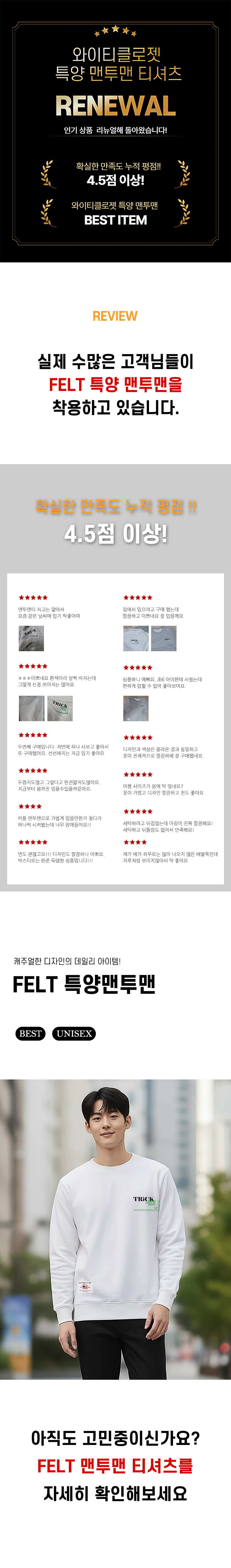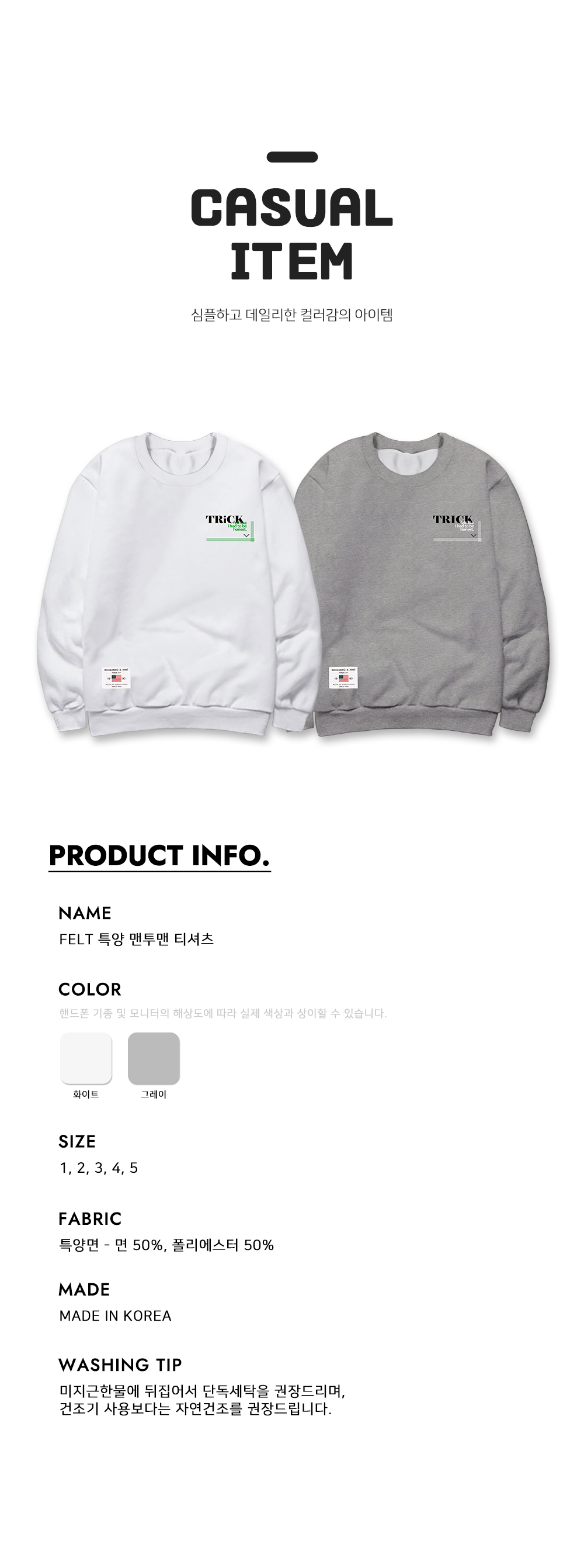 1+1(2PACK) 봄가을 특양 맨투맨 FELT 남여공용 스웻셔츠 긴팔티 홈웨어 일상복~3XL