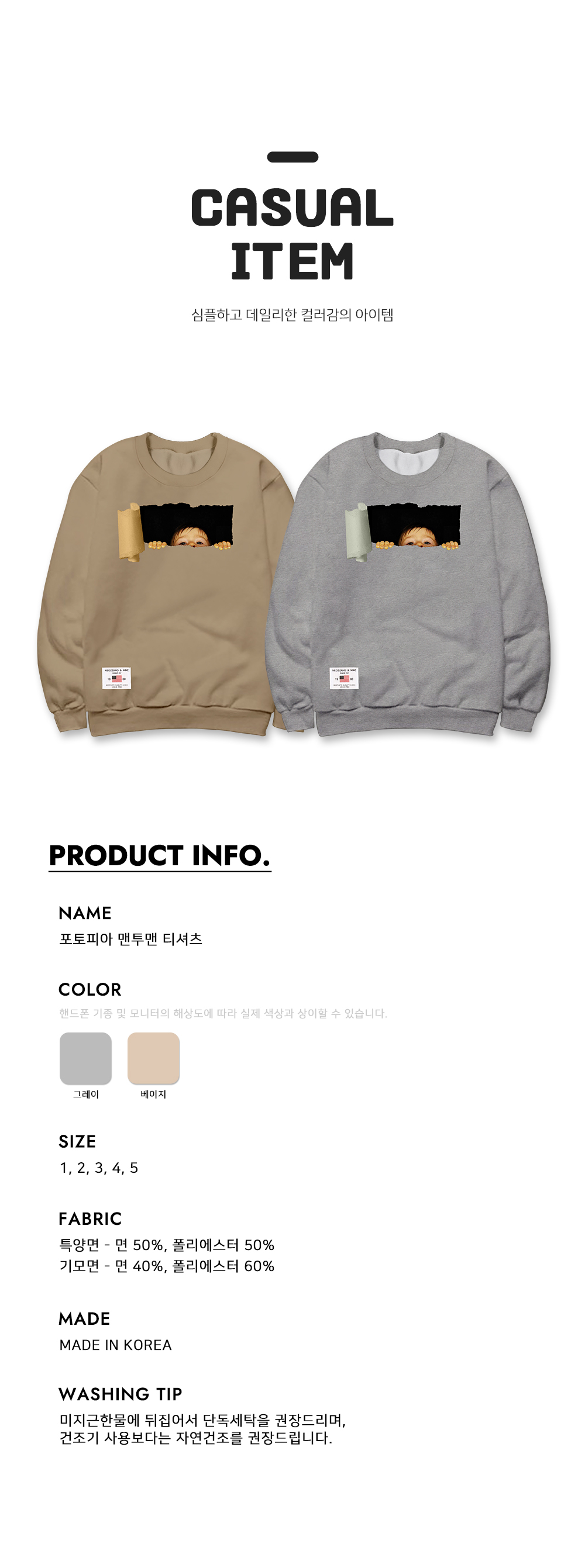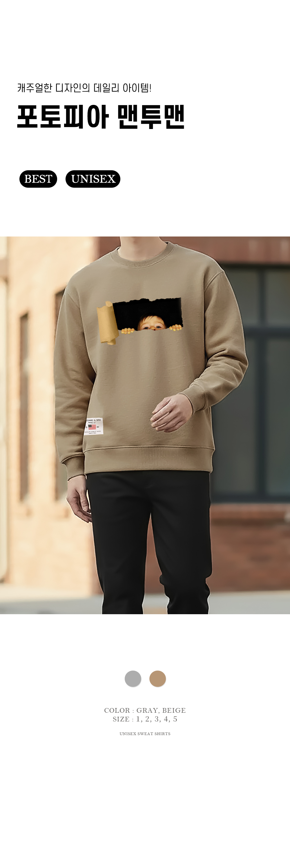 1+1(2PACK) 특양/기모 맨투맨 포토피아 남여공용 스웻셔츠 긴팔티 홈웨어 일상복~3XL
