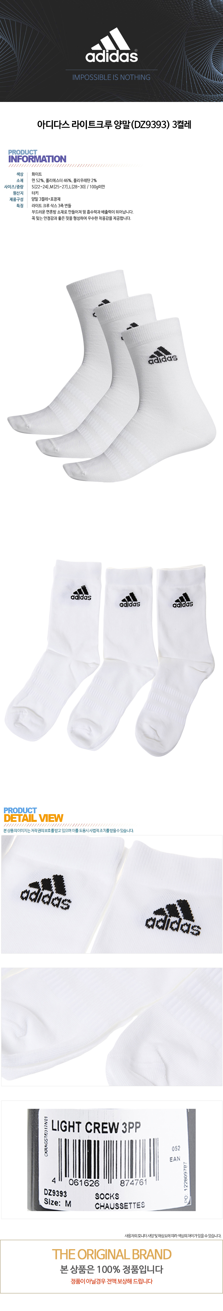 아디다스 라이트크루 양말(DZ9393) 3켤레