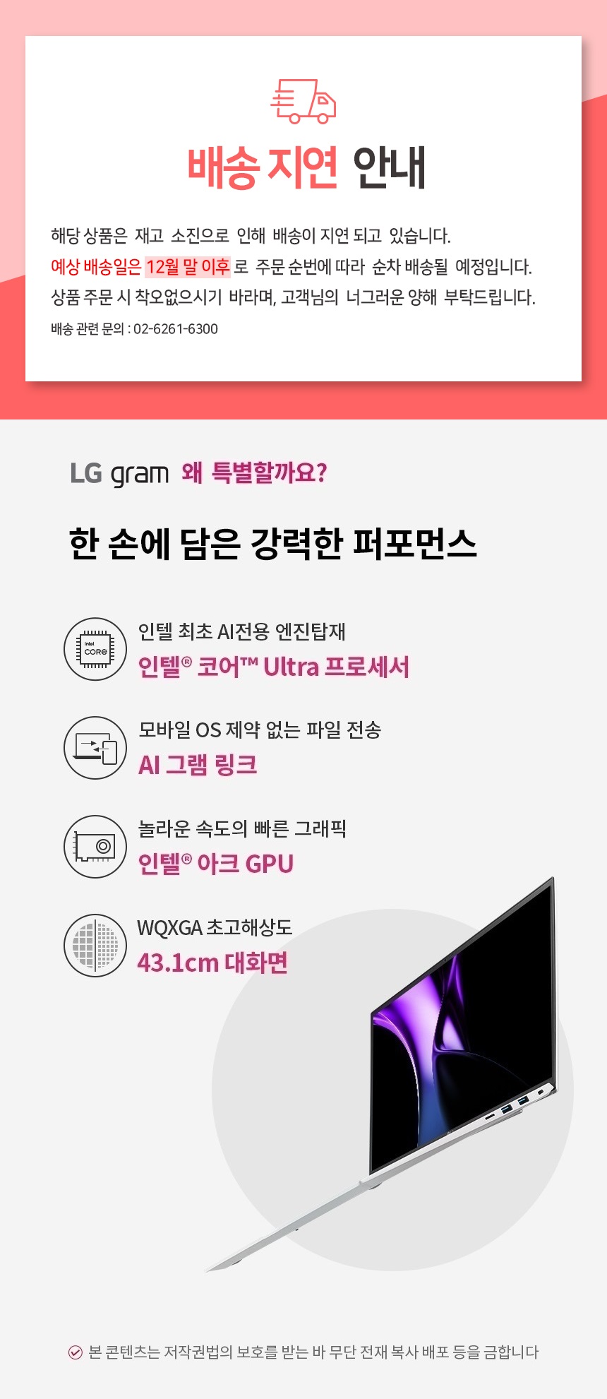 [LG전자] 그램 43.1cm 노트북 (17Z90S-GAOWK)/인텔 Ultra 5/16GB/512GB/WIN 11 홈