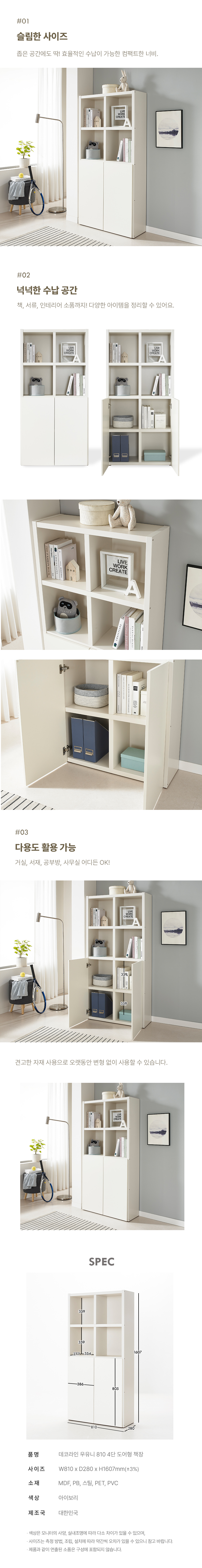 [데코라인] 우유니 기획 810 도어 낮은책장