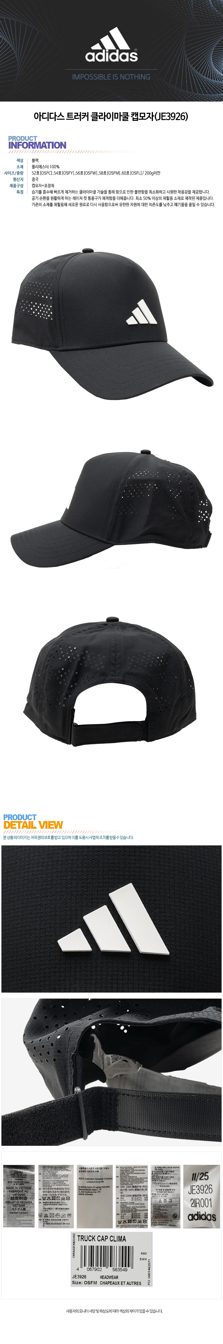 아디다스 트러커 클라이마쿨 캡모자(JE3926)