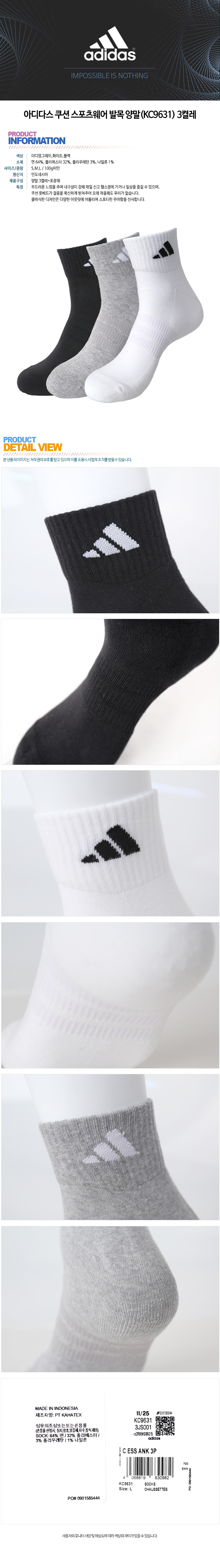 아디다스 쿠션 스포츠웨어 발목 양말(KC9631) 3켤레