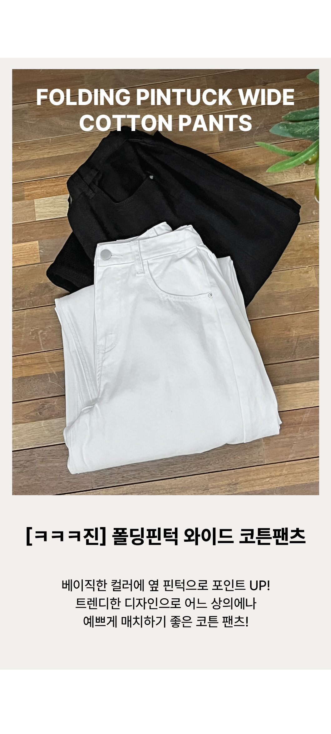 [ㅋㅋㅋ진] 폴딩핀턱와이드코튼팬츠-SP/FW
