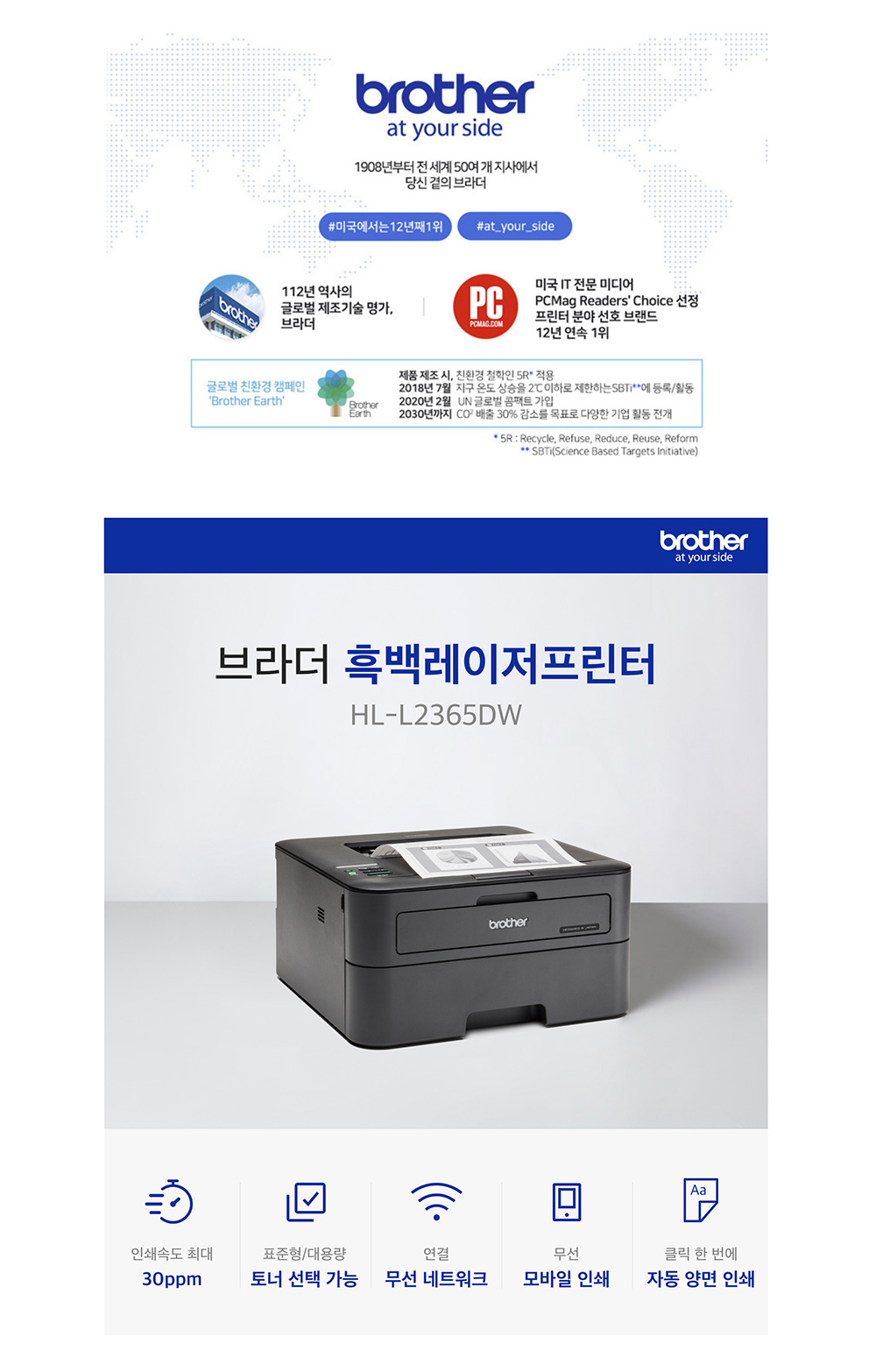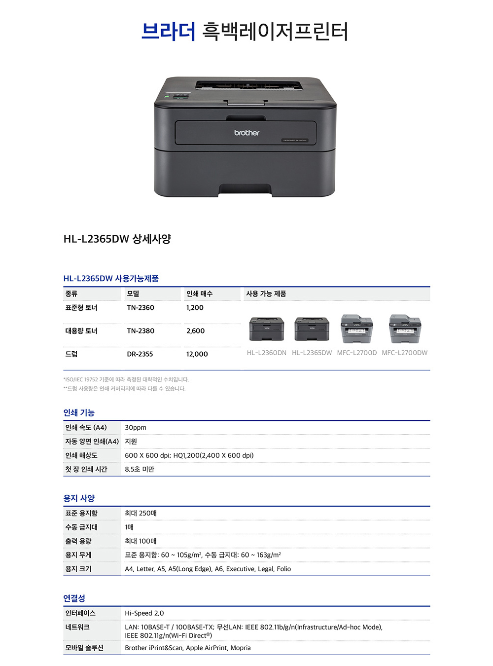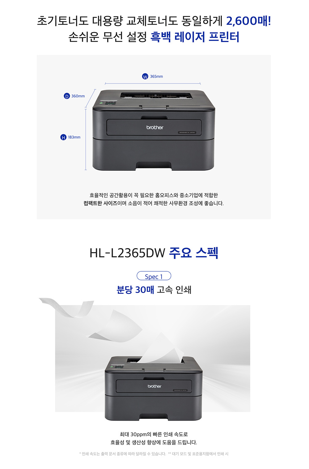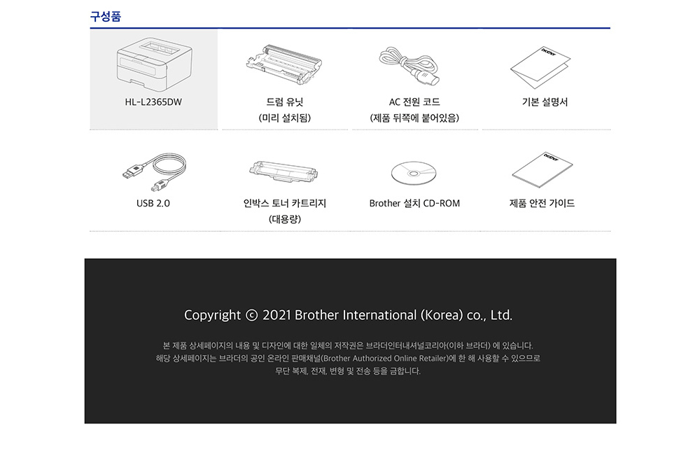 브라더 HL-L2365DW (토너포함) 흑백 레이저프린터 양면인쇄 무선네트워크 (WIFI)