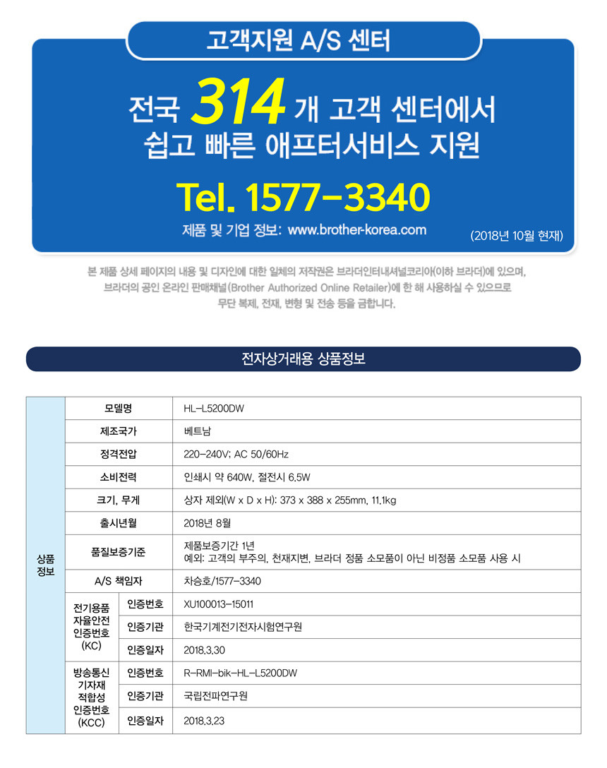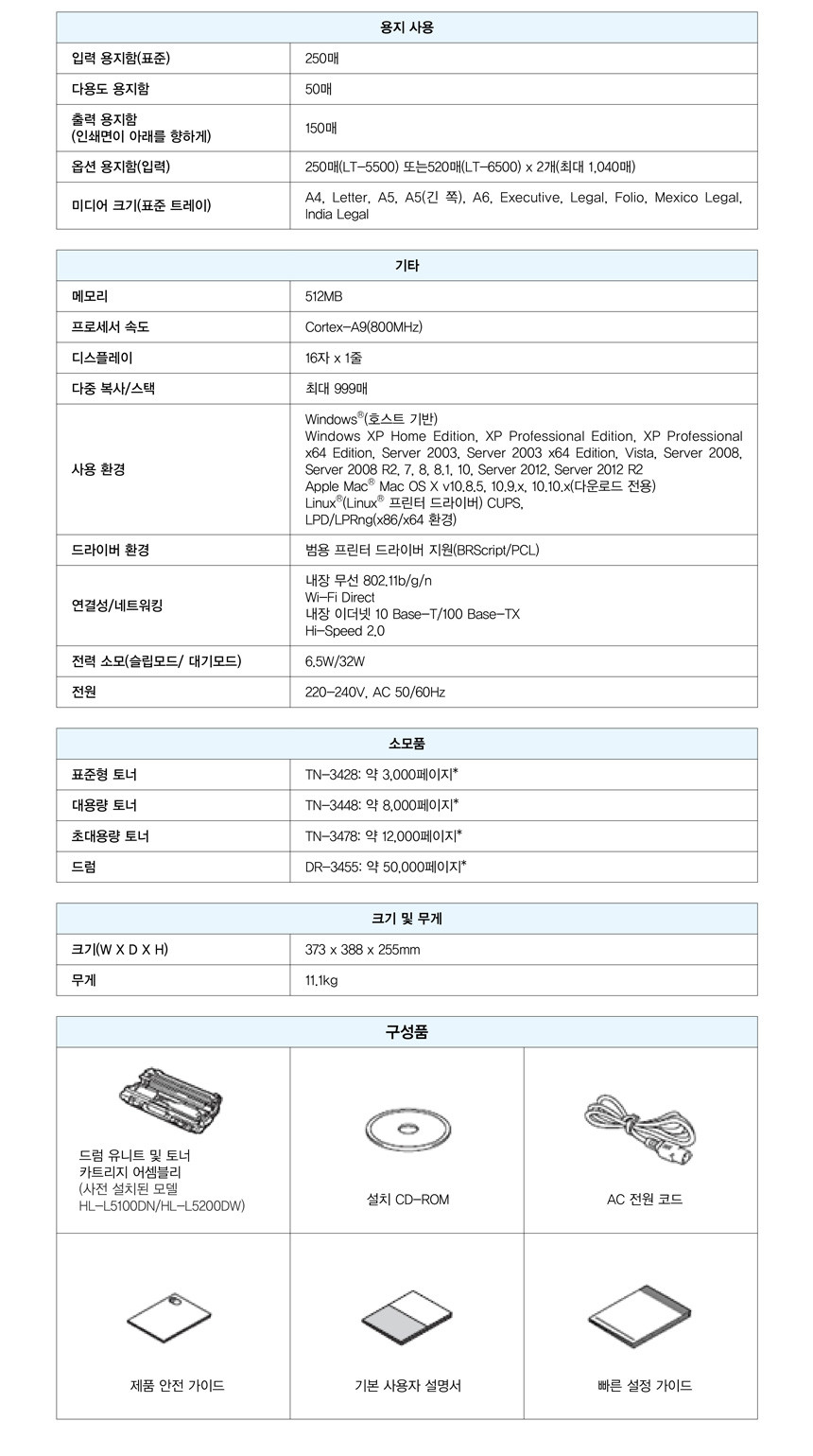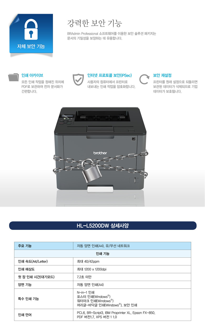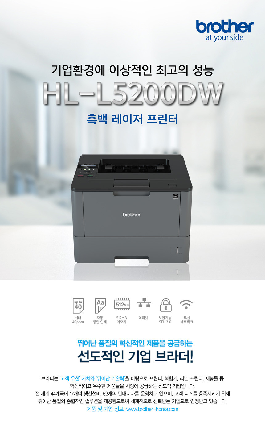 브라더 HL-L5200DW 프린터 / 초고속 레이저프린터 / 자동양면인쇄 / 무선네트워크