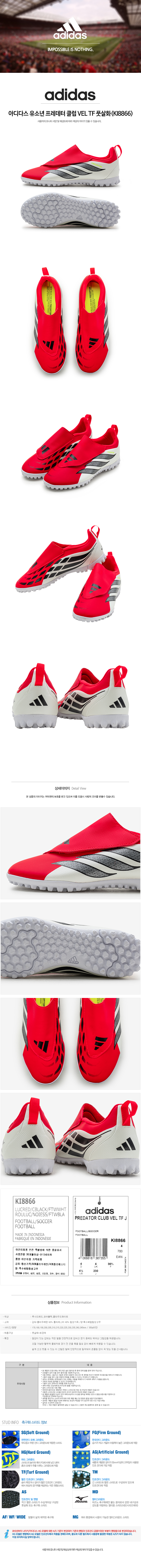 아디다스 유소년 프레데터 클럽 VEL TF 풋살화(KI8866)