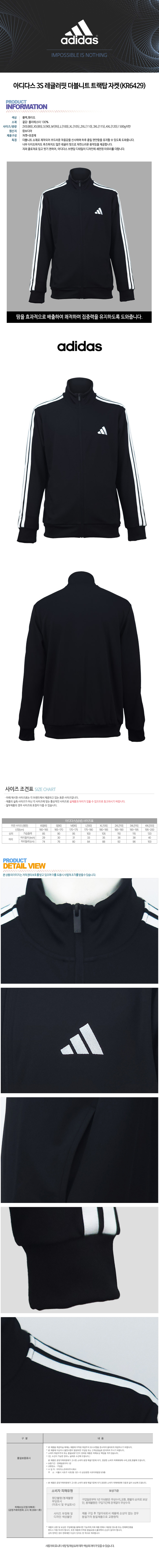 아디다스 3S 레귤러핏 더블니트 트랙탑 자켓(KR6429)