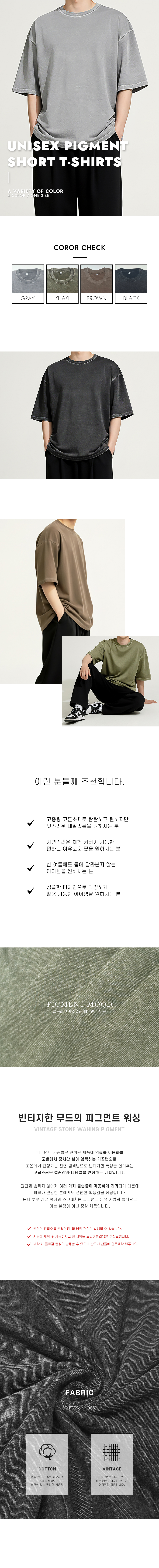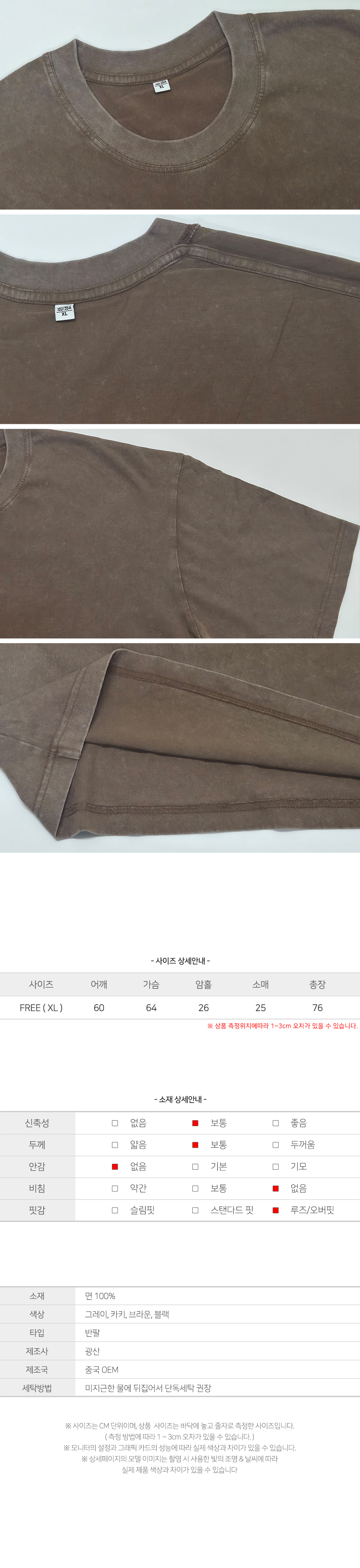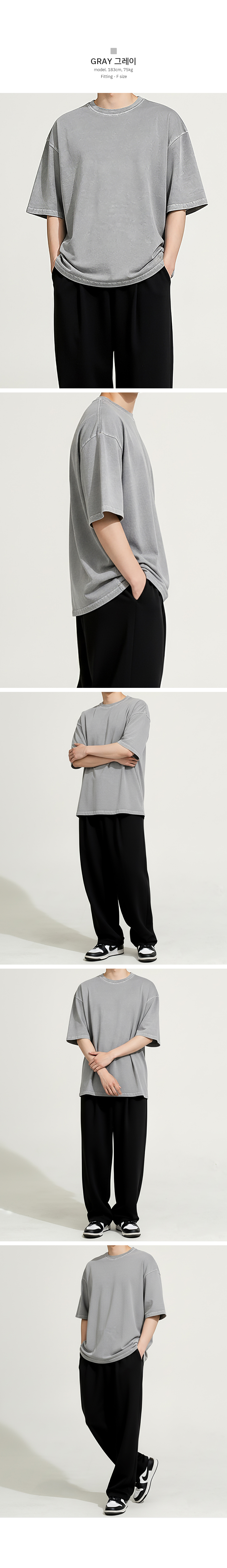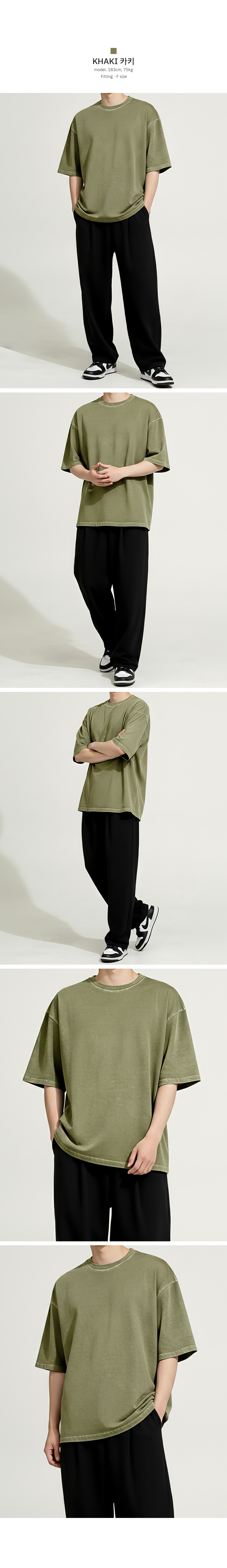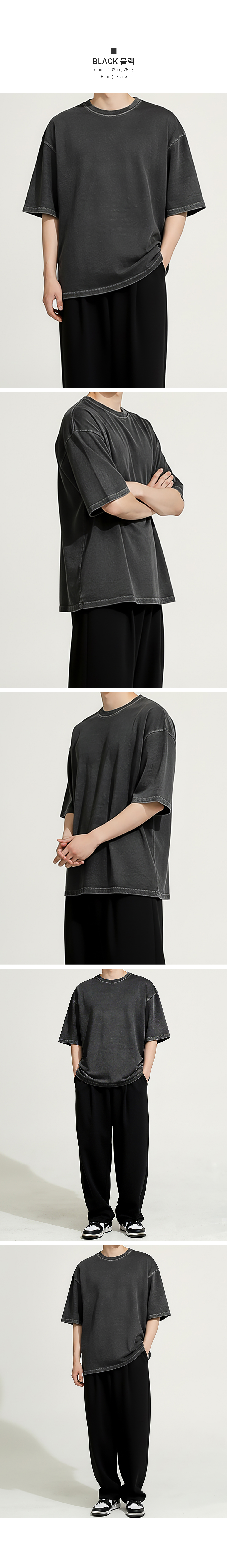 빈티지 스톤워싱 피그먼트 반팔티 빅사이즈 유니섹스 라운드넥 티셔츠