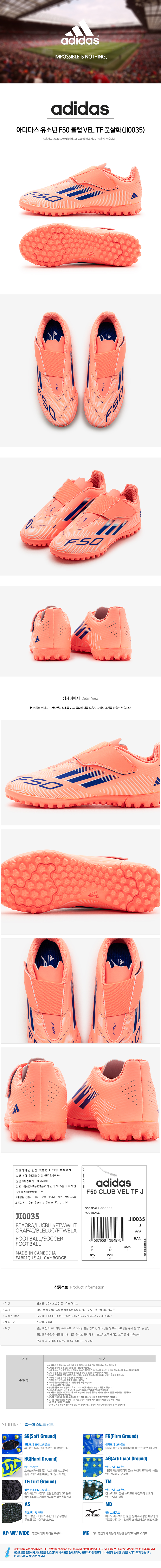 아디다스 유소년 F50 클럽 VEL TF 풋살화(JI0035)