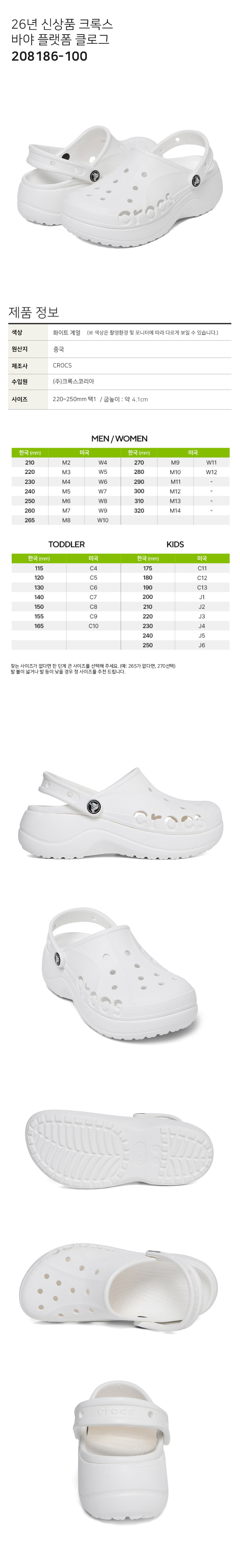 26년 신상품 크록스 바야 플랫폼 샌들 화이트 208186-11S
