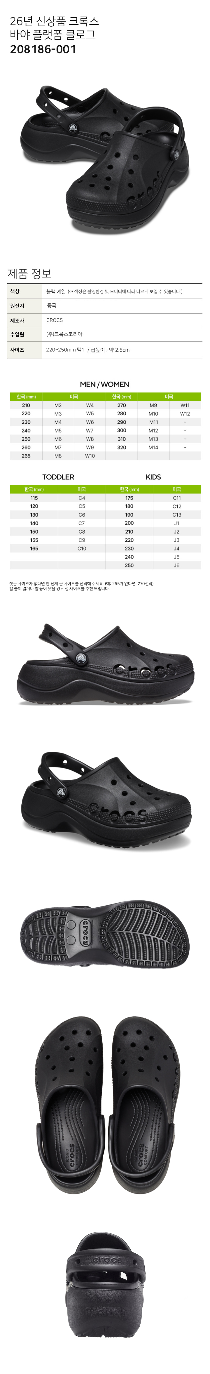 26년 신상품 크록스 바야 플랫폼 클로그 블랙 208186-001