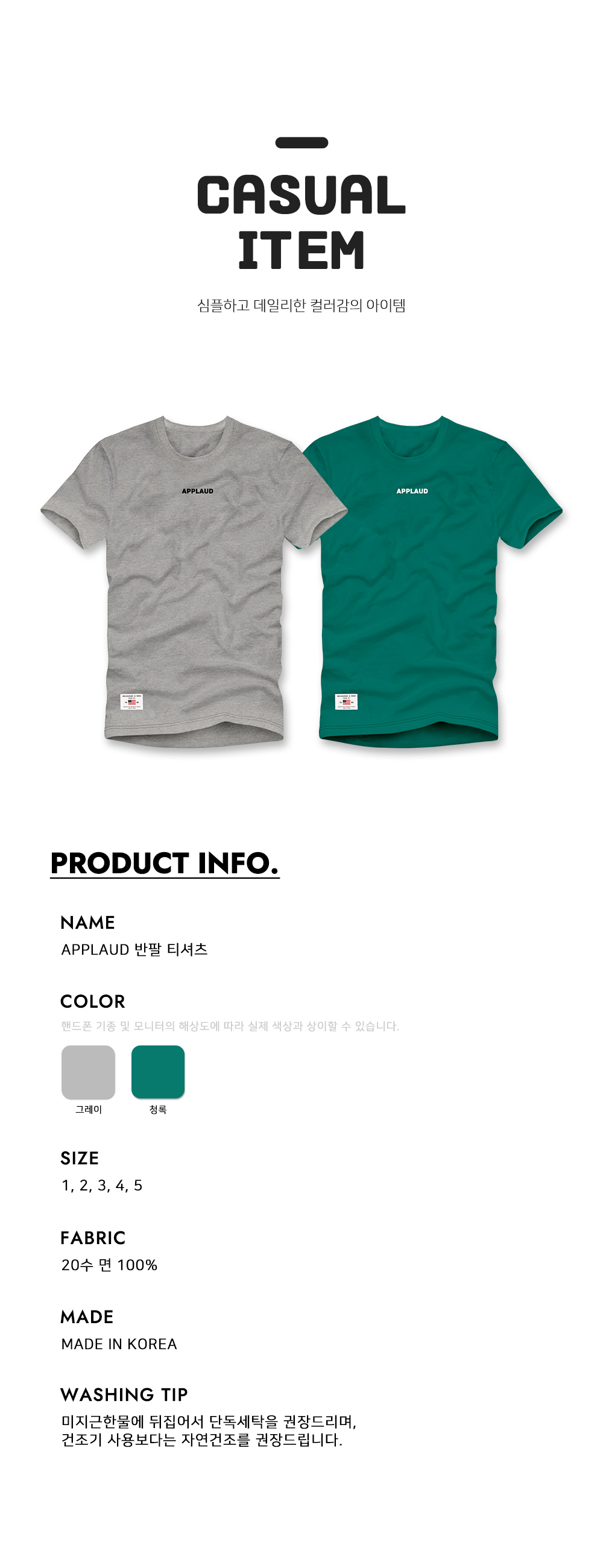 [1+1] APPLAUD 반팔 티셔츠 남여공용 20수 면 반소매 티셔츠