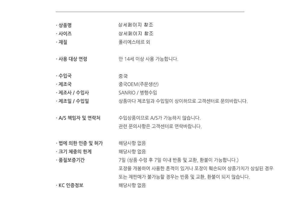 산리오 쿠로미 25 신발주머니 실내화 가방 (컴퓨터)